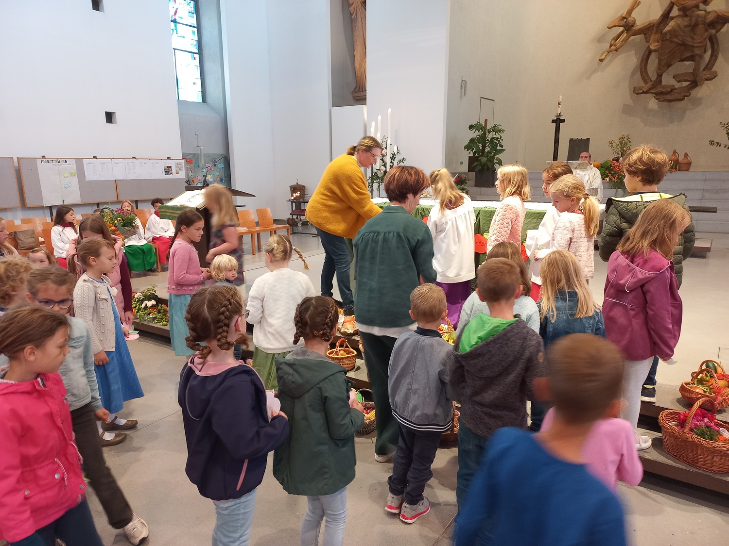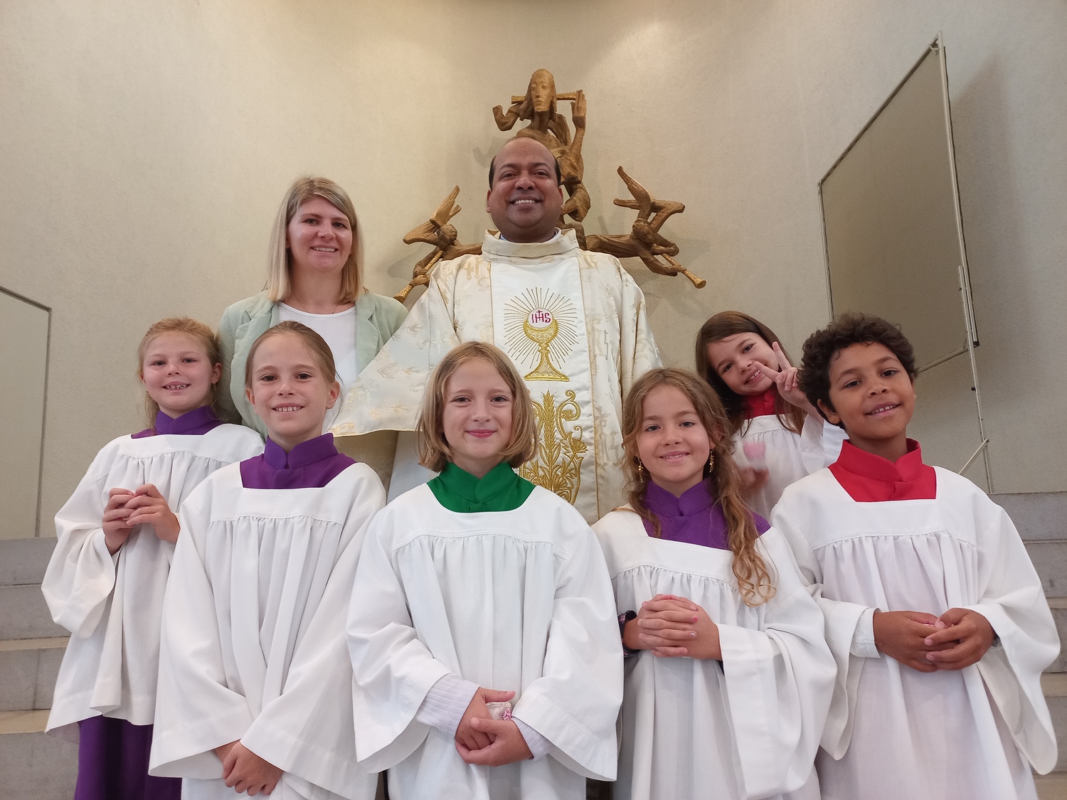 Die Minis haben in jedem Gottesdienst eine sehr wichtige Aufgabe: sie unterstützen den Priester bei der Gabenbereitung, beim Evangelium und beim Einsammeln der Kollekte. Sie bringen Brot und Wein zum Altar, sind behilflich bei der Handwaschung, läuten die Glocken bei der Wandlung und tragen Leuchter und Rauchfass.