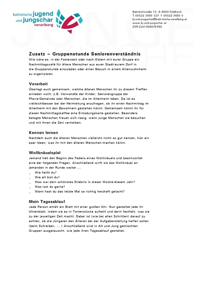 Wie wäre es, in der Fastenzeit oder nach Ostern mit eurer Gruppe ein Nachmittagscafé für ältere Menschen aus eurer Stadt/eurem Dorf in die Gruppenstunde einzuladen oder einen Besuch in einem Altenwohnheim zu organisieren?