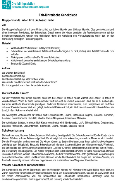 Gruppenstunde Fair-führerische Schokolade
